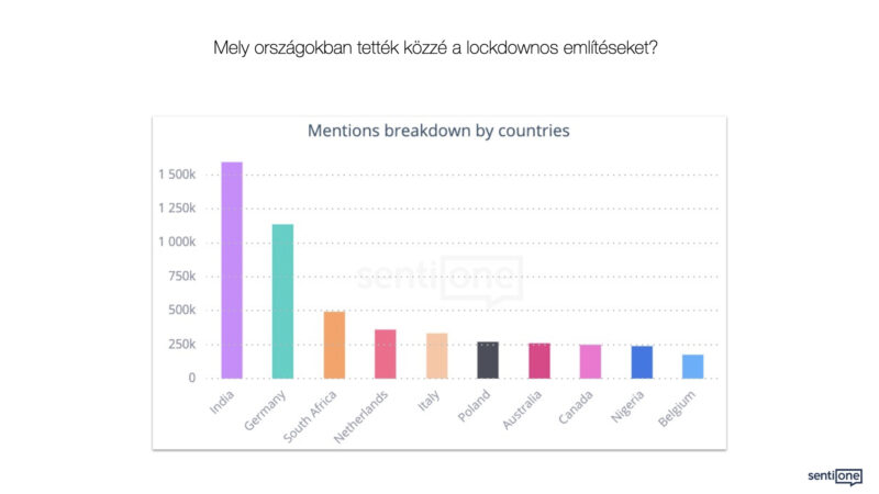Nagyon hasonló tendencia mutatkozik a kifejezést használó országok tekintetében is. Ha nem vesszük figyelembe az USA-t és Nagy-Britanniát, akkor Németország, Hollandia és Olaszország ismét a top 5 lockdown-használók között vannak. Közéjük keveredik még India – mely népességaránya miatt nem nagy meglepetés – és Dél-Afrika.