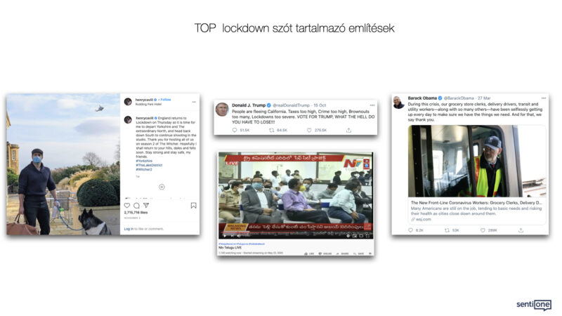 Facebookon a lengyel szélsőjobbioldali Konfederacja párt használta a legaktívabban, leghatékonyabban a kifejezést, több, mint 150 alkalommal juttatva el több, mint félmilliós követőtáborához. A Twitteren a Reuters vitte a prímet, több, mint 2700 tweetet szentelt a lockdown kifejezésnek, beszámolva a világ különböző tájain történő aktuális lezárásokról, az arra adott reakciókról, a lezárások hatásairól is. Az Instagramon Henry Cavill színész volt a legnagyobb hírvivője a lockdownnak, aki két tartalmat adott közzé a témában, egyet a tavaszi, egyet pedig az őszi második hullám idején. Egyikben egy rejtett tehetségét fedte fel a követői előtt (miniatűr szobrokat készít), másikban pedig a Witcher forgatásáról számolt be (ez a poszt mintegy 2,7M like-ot zsebelt be ).