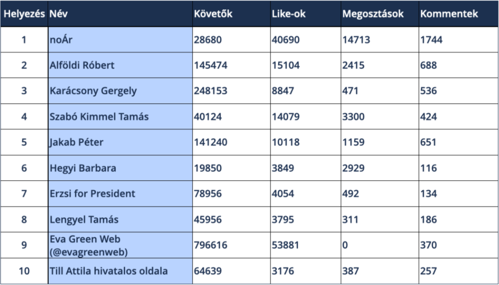 Izgalmas látni, hogy bár a lista egyetlen külföldi szereplője, Eva Green Instagram követőinek száma messze übereli a magyar művészekét/influencerekét, megosztott tartalmával mégis csupán a lista 8. helyét foglalja el (még meglepőbb, hogy Sir Ian McKellen, vagy Cate Blanchett pedig fel sem kerültek a top 10-es listára, pedig előbbinek követőbázisa meghaladja a 4,5 millió felhasználót).