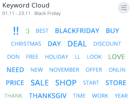 SentiOne shows the most frequently words mentioned in connection with Black Friday