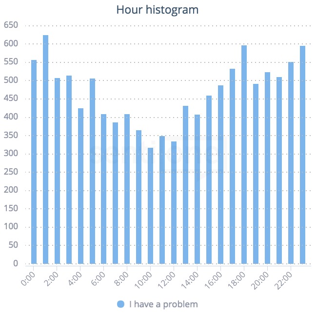 When internauts ask questions the most often? One of the assets of online monitoring is optimisation of customer service workload. While the subject “I have a problem” is a big generalization, it only takes adding a keyword in the project configuration – the name of your brand – to know on which days the customers are the most active.