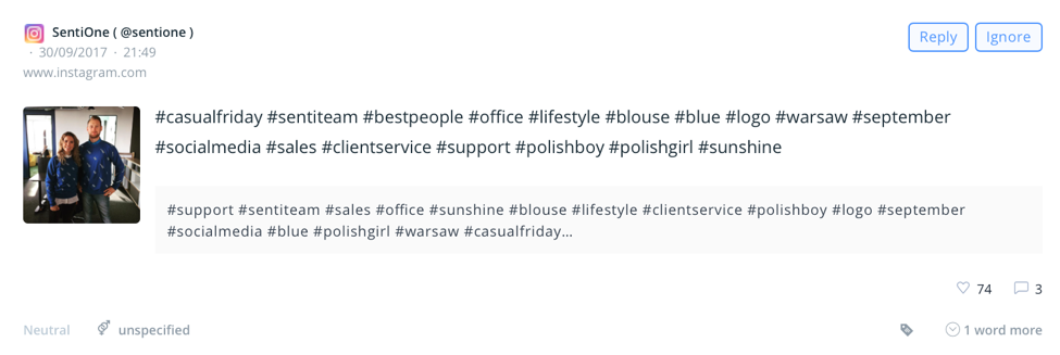 Rozpoznání reakcí na Facebooku není všechno. SentiOne má mnoho funkcí, které vám pomohou porozumět webu. Na Instagramu sbíráme nejenom komentáře, ale také srdíčka z každé nahrané fotky.