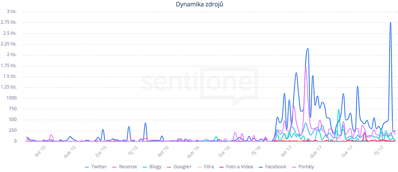 Během posledních let se počet fake news rapidně zvýšil. V České republice se tento termín za poslední 3 roky rozmohl hlavně v roce 2017, jak můžeme vidět na následujícím grafu zmínek v čase. Od začátku tohoto roku bylo vygenerováno více než 75 000 zmínek, kdy největší nárůst potom nastal zejména v období února v souvislosti s hrozbami falešných zpráv o NATO pocházejících z Ruska a dále v říjnu během probíhajících parlamentních voleb.