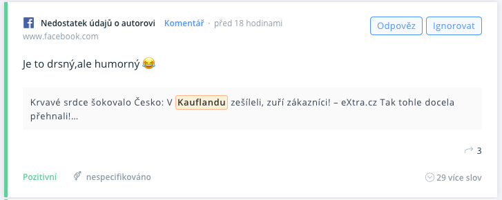 A výsledný sentiment všech zmínek mluvil za vše.. Téměř 66% zmínek napříč internetem bylo pozitivních a ukázalo se, že Češi mají smysl pro humor a dokážou brát recesi s rezervou.
