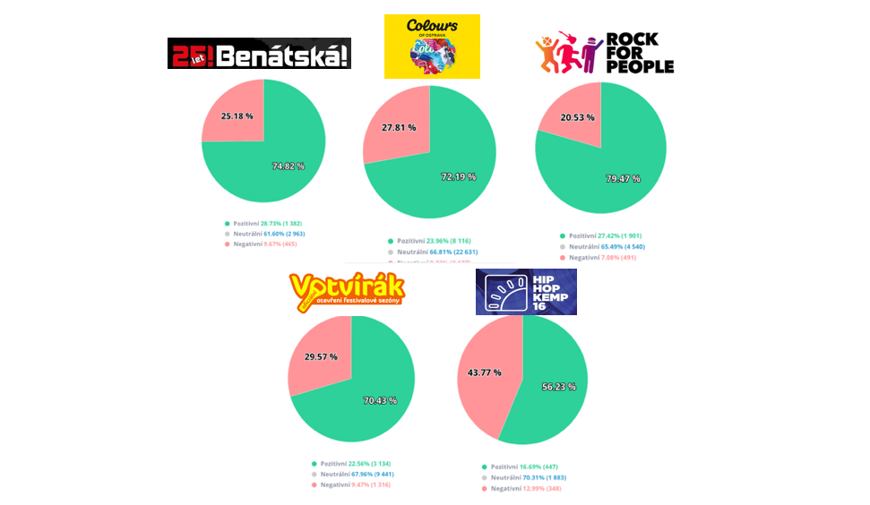 Statistiky a čísla typu jaká byla návštěvnost jednotlivého festivalu, kolik bylo kapel, kolik se snědlo jídla a vypilo sudů piva se vypočítají snadno. Ale jak zjistíme, jaké jsou statistiky a výsledky jednotlivých festivalů z jejich online působení? SentiOne to zvládne levou zadní!