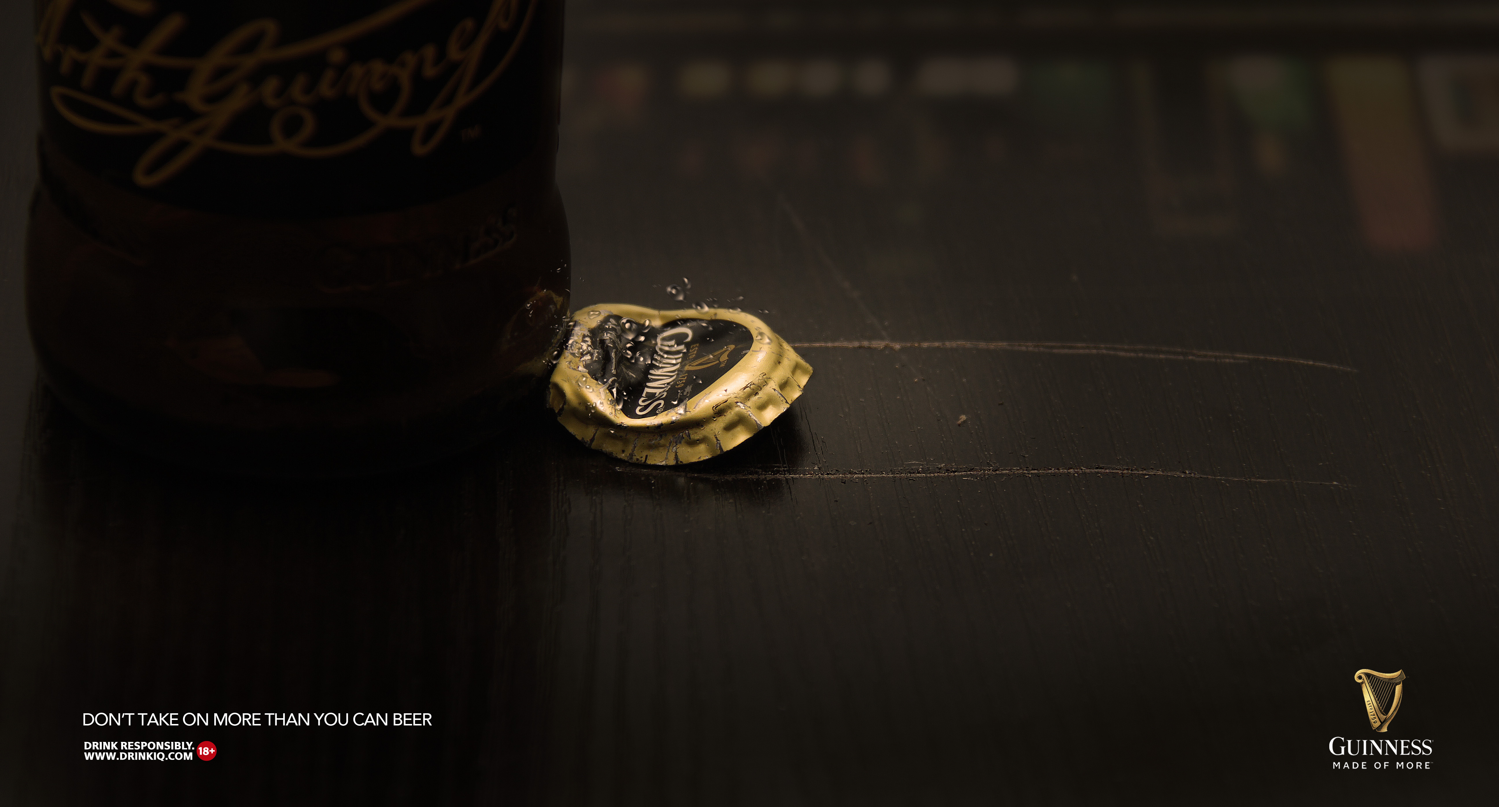 El compromiso no siempre significa una gran escala. Usted puede involucrarse con las personas individualmente inspirándolas a asumir la responsabilidad. Las imágenes simples son las más memorables, como en este anuncio de Guinness.