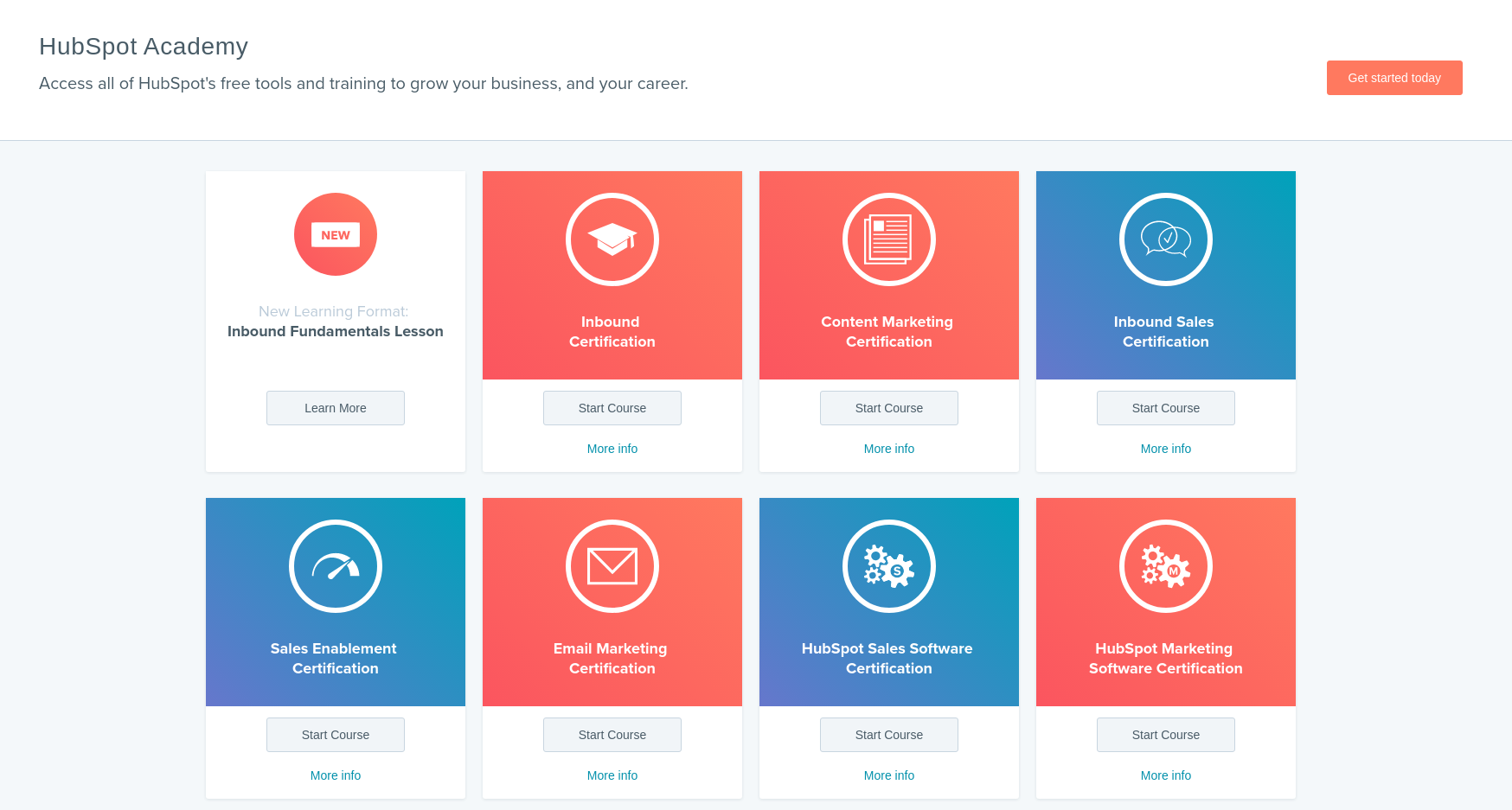 Como un ejemplo de calidad, echemos un vistazo a Hubspot. Son posiblemente el proveedor de contenido de marketing de calidad más reconocible alrededor. Su Hubspot Academy ofrece innumerables cursos gratuitos orientados a la industria, que son a la vez exhaustivos y accesibles. Esto les ayudó a establecerse como líderes del mercado.