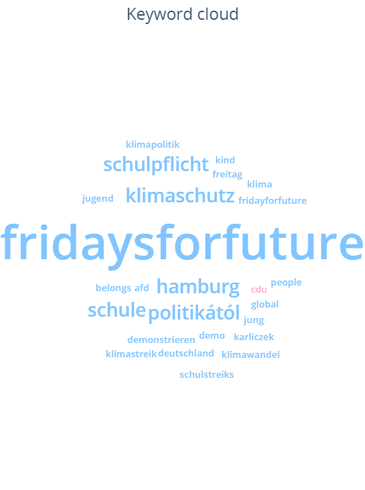 Keyword clouds for “Greta Thunberg” from the COP24 and last school strike periods leave no doubts either:
