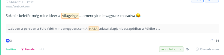 Így van. Valid pont. Mielőtt megbélyegzel valamit vagy valakit…Mielőtt elhiszel valakinek valamit….Nézz utána a dolgoknak. Erre szuper megoldást nyújthatnak azok a szövegelemzésen alapuló SaaS eszközök, melyek például képesek meghatározni egy-egy online bejegyzés, márkaemlítés érzelmi hátterét. A SentiOne social listening platformja a piac egyik legkorszerűbb érzelemelemző funkcióját biztosítja – 27 európai nyelvre, az emotikonok vizsgálatával együtt.