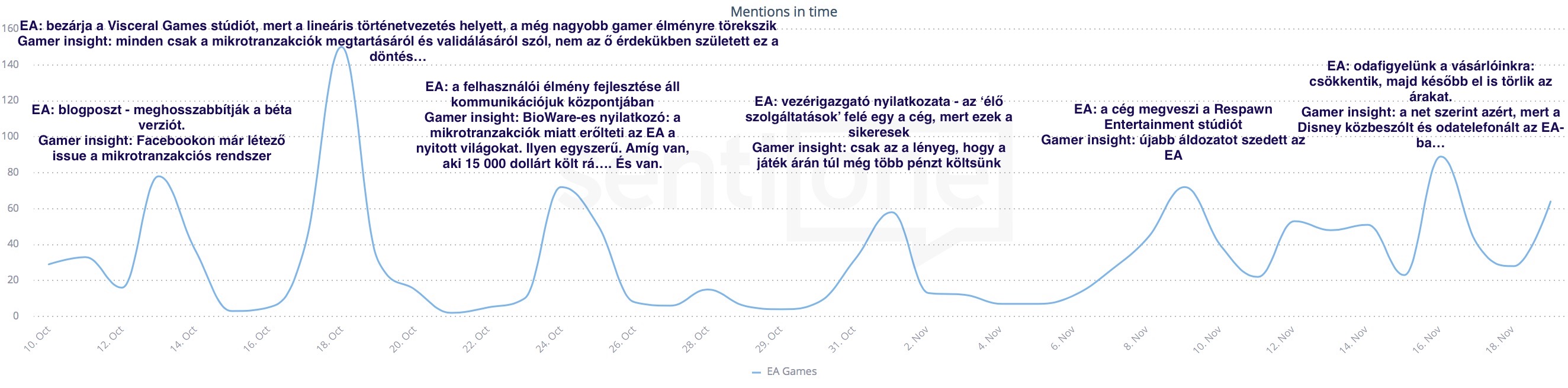 A Wizzair botrány – ingyen repjegyet osztogat a cég – futótűzként terjedt a neten. Első körben a Twitteren osztották meg a felhasználók, majd átterjedt Facebookra a hír, és a portálok ekkor kezdtek el cikkezni arról, hogy az egész dolog egy óriási kamu. Márkaként nagyon fontos, hogy már a krízishelyzet első rezdülésénél rátaláljunk a megfelelő platformra, ahol állást akarunk foglalni. Mivel a SentiOne grafikonjai interaktívak, így nem csupán látod, hogy mi hol történik, de a képbe kattintva a rendszer visszavisz a konkrét és eredeti bejegyzéshez (az eredeti környezetben, a szerzővel együtt).