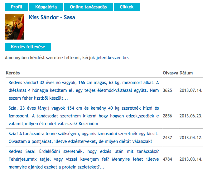 Ugyanakkor a Sasa oldalára mutató Facebook link már nem aktív, az edző ráadásul egy teljesen másik, független oldalt futtat Facebookon, így valószínűleg ez az együttműködés megszakadt. Épp csak ez nem derül ki az oldalról… Legfeljebb abból, hogy a hozzá kötött, és a weboldalra csatornázott online tanácsadás tartalomfolyamában a legfrissebb (olvasói) kérdés 2013-as.