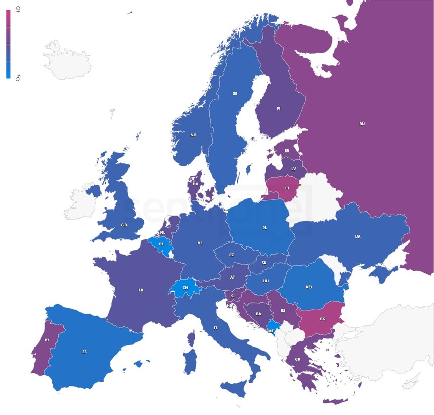 In this case, the more purple the color, the more words written by ladies. The women leaders in the Movember campaign became Lithuanians – 83% of all mentions in this country. The least active were women from Spain – only 17%.