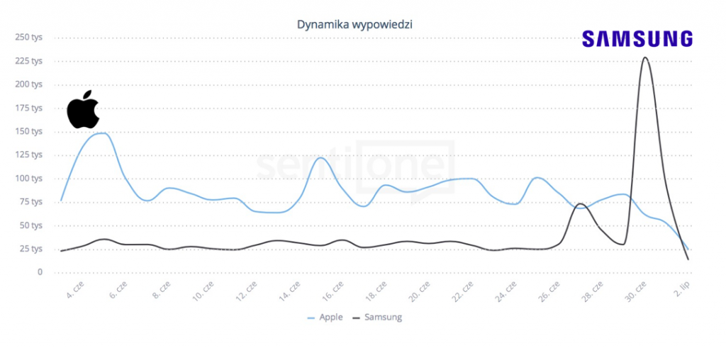 Porównanie dynamiki wypowiedzi dla tematów Apple i Samsung