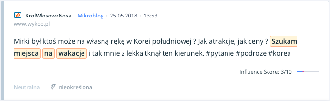 Warto podejść do tematu z innej perspektywy i nieco bardziej sprecyzować odbiorców, do których chcemy dotrzeć na podstawie tego, o czym dyskutują w sieci. Przy użyciu monitoringu internetu możemy bardzo łatwo sprawdzić, w jakich dniach i godzinach nasi odbiorcy dyskutują na dany temat – a co za tym idzie, podsunąć im kolejny do omówienia temat w postaci przemyśleń z własnego bloga.