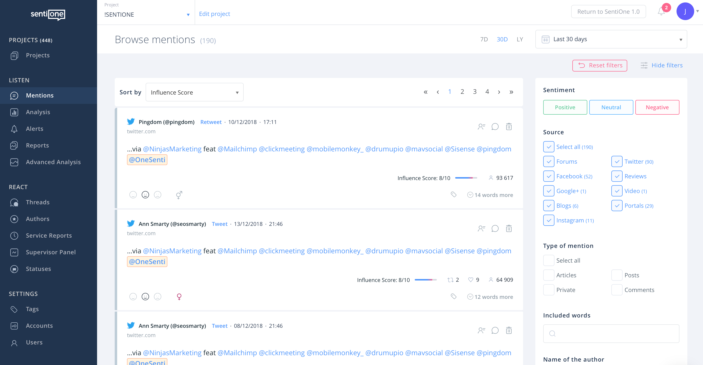 - Umożliwiliśmy również filtrowanie danych według typu wzmianek, dzięki czemu znacznie łatwiej jest przejrzeć wybrane posty, artykuły, komentarze lub prywatne wiadomości.