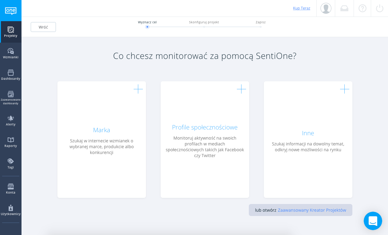 A tak na serio, po prostu zmieniliśmy ich nazwę na PROJEKTY, a za nową nazwą poszła także zmiana wyglądu. Mamy wrażenie, że nazwa “Projekt” lepiej wpisuje się w architekturę całej aplikacji, ponieważ to właśnie na projektach pracuje się w obrębie innych modułów (np. Wzmianki czy Dashboardy). Dlatego też od teraz z listy projektów można od razu przedostać się do innych modułów.
