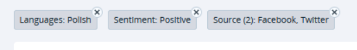 Rzecz jasna, wszystkie te filtry można ze sobą mieszać i dopasowywać. Możesz wybrać, dajmy na to, pozytywne opinie o Twojej marce padające z ust polskich użytkowników, ale wyłącznie na Facebooku i Twitterze — bez uwzględnienia wypowiedzi na YouTube, blogach czy forach.