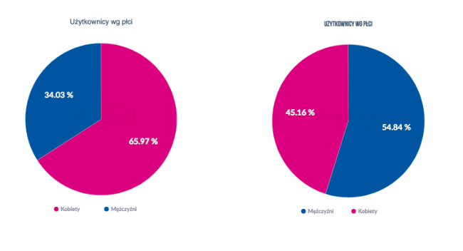Wykres proporcji wypowiedzi według płci. Po lewej – wypowiedzi, w których padało słowo “Jacobs” po prawej – “Lavazza”.
