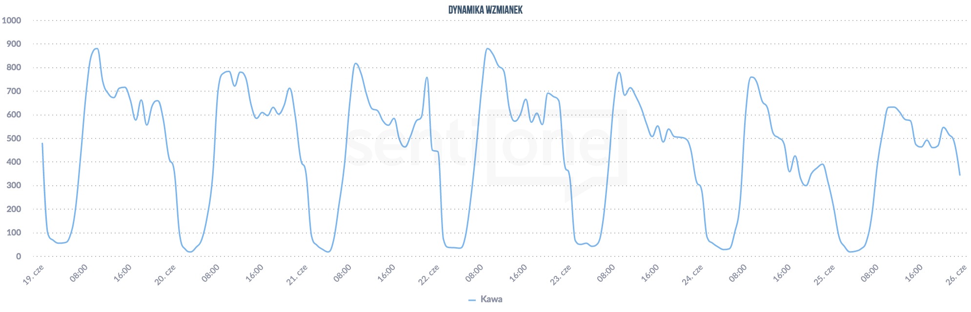 Wykres godzinowy dla tematu “kawa” – przekrój tygodnia. Nietrudno zauważyć zależności.