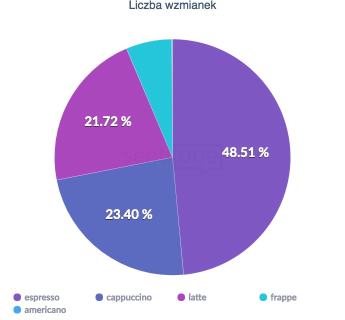 Wyróżnimy smakoszy i smakoszki latte, kawy mrożonej, espresso, irish coffee… Konfigurując temat w sposób bardziej zaawansowany dowiemy się, ilu z miłośników kawy czarnej wybiera sypaną, ilu rozpuszczalną, a którzy tę z ekspresu. Jakiej marki napar i o której godzinie chętniej piją kobiety. Które z nich do porannej kawy wybiorą croissanta, a które ciastko z cukierni?