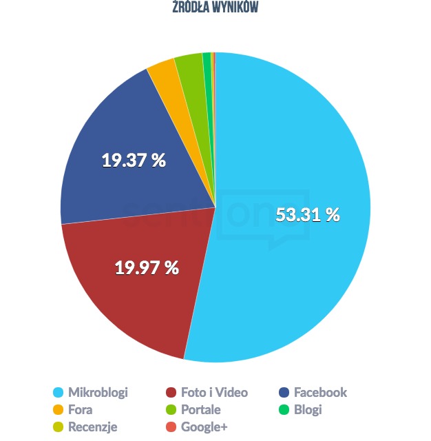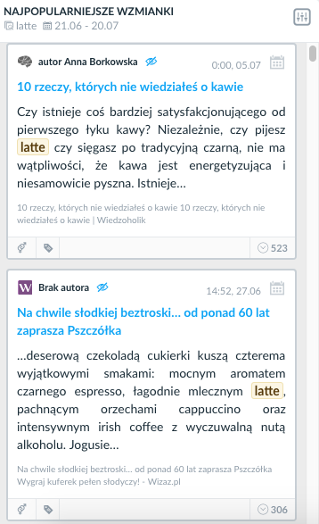 Źródła wyników da tematu “Latte”. Widok z SentiOne.
