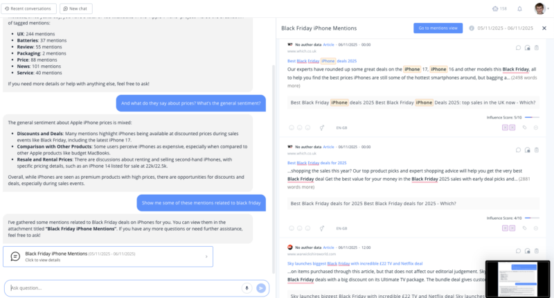 - Nowe endpointy dla dyskusji – pozwalają pobierać wszystkie wzmianki z jednego wątku, posta lub rozmowy. Dzięki temu zyskujesz pełny kontekst, co ułatwia analizę dynamiki interakcji i tonu komunikacji.