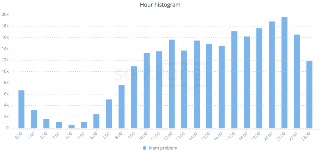 Kiedy dopytują internauci? Monitoring internetu pozwala na optymalizację pracy działu obsługi klienta. O ile temat „mam problem” jest dużym uogólnieniem, to wystarczy w konfiguracji projektu dodać hasło kluczowe – nazwę naszej marki, aby wiedzieć, które dni są najaktywniejsze.