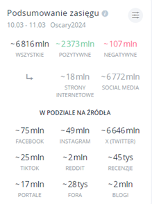 Co istotne, jedynie 7% wzmianek na temat Oscarów miało negatywny wydźwięk (25% pozytywny, a 68% neutralny), podczas gdy rok temu ten wskaźnik wynosił 12%. Taki trend spadkowy wyraźnie podkreśla, że wydarzenie samo w sobie raczej nie wzbudza w odbiorcach nieprzyjemnych emocji.