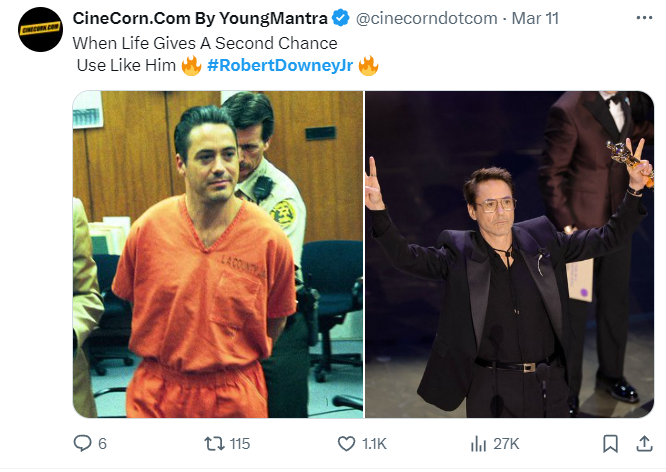 Obyło się bez żartów? Zdecydowanie nie – ale internautów najbardziej oburzył żart prowadzącego galę Jimmy’ego Kimmela na temat nadużywania narkotyków w przeszłości przez Roberta Downey’a Juniora (teraz otrzymującego Oscara za rolę drugoplanową w “Oppenheimerze”). Przypomnienie tego faktu dało im jednak obszar do przygotowania postów pokazujących, że nigdy nie jest za późno, by zmienić swoje życie (nawet jeśli siedziało się w więzieniu, tak jak tegoroczny laureat Oscara):
