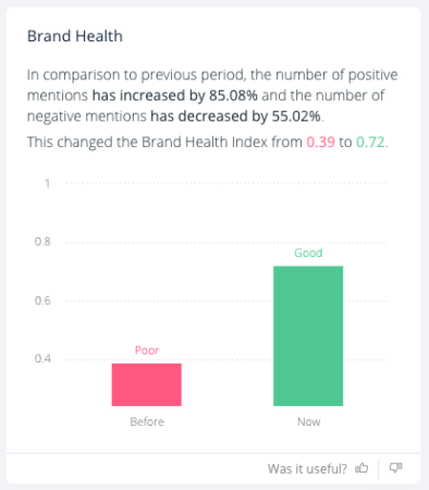 Jak intensywne reakcje wygenerowało to działanie? Analiza SentiOne pokazuje, że rozmowy o Fenty Beauty wzrosły po emisji programu o 215% i wygenerowały 145 miliardów zasięgu online w ciągu 2 dni. Stosunkowo słaby Brand Health Index (czyli stosunek pozytywnych do negatywnych wzmianek) marki Fenty w styczniu, w lutym polepszył się prawie dwukrotnie. Wszystko to, dzięki wirusowym trzem sekundom na antenie.