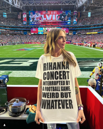 Lista działań marketingowych na tym się jednak nie kończy. Rihanna wypuściła limitowaną edycję sezonowej koszulki, którą, nosiły gwiazdy, takie jak Cara Delevingne. Koncepcja? Biały t-shirt z napisem „Koncert Rihanny koncert przerwany meczem piłki nożnej, dziwne ale co tam”. Proste, z humorem, warte zapamiętania.