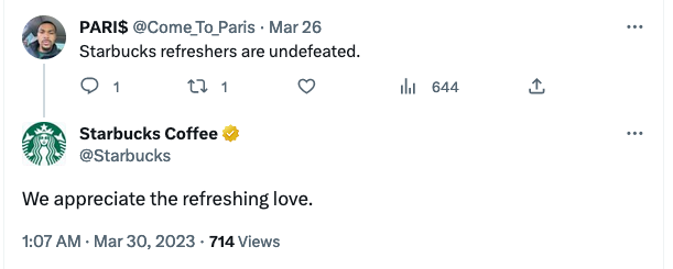 Have you wondered how Starbucks can find a Tweet without that person tagging them? It’s because they’ve set their social listening for certain keywords and topics, so they’re able to be present in a positive way, with people who would never expect it.