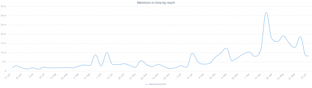 The topic of women present in the world of science, innovation, and new technologies is becoming more and more popular. Hashtag #womentintech reached over 30 million impressions in the last year and has clearly got more attention over time.
