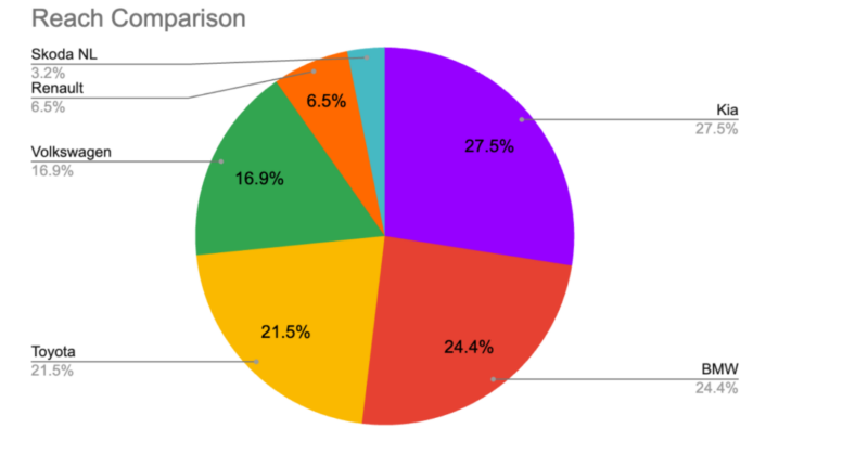 Despite having less than 9% of total buzz, Kia’s posts reach farther than anyone else’s — accounting for over 27% of total audience exposure.