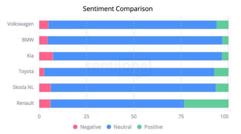 Toyota and Renault lead in positivity.