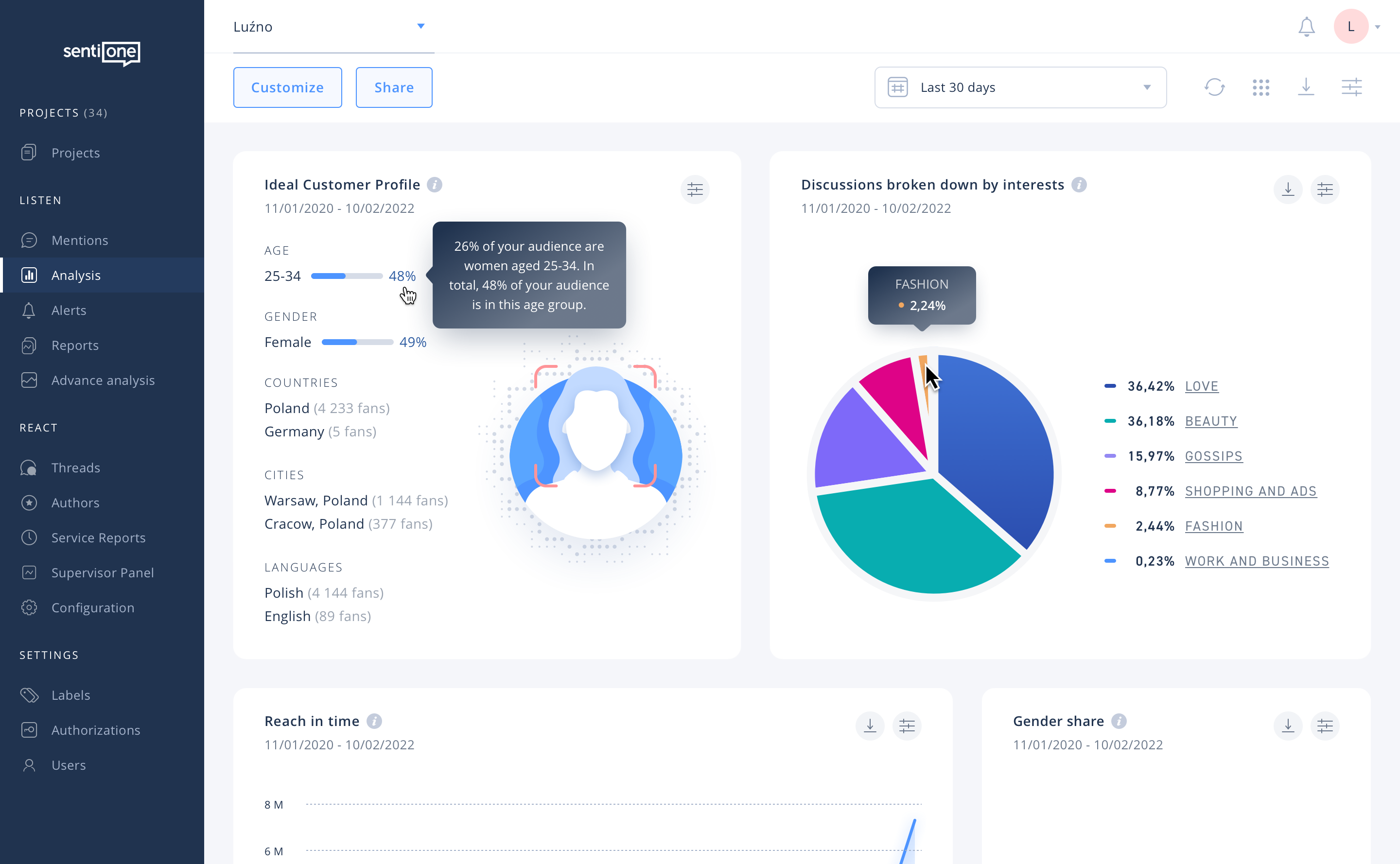 Los datos contenían información sobre el comportamiento del consumidor, afirmación del sentimiento, así como métricas demográficas. SentiOne ofreció un análisis de datos en tiempo real que a su vez proporcionó insights útiles basados en un análisis de menciones multicanal. Adicionalmente, al utilizar herramientas basadas en APIs proporcionadas por las plataformas más grandes de redes sociales, SentiOne optimizó el enfoque de la agencia en menciones en línea. Debido a esto, Luzno podía responder las consultas realizadas a través de todos los canales desde una única herramienta.