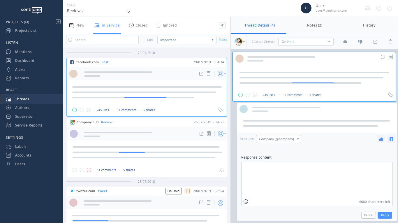 No more switching between multiple social platforms to juggle your brand image. Integrate your social media profiles into one dashboard and join online conversations.